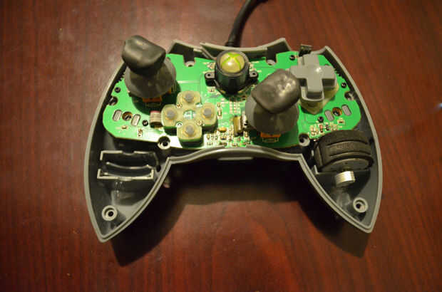 Con la cara del alambique controlador hacia abajo, lentamente separe las dos mitades de la cáscara del controlador. Si usted tiene cuidado, los botones permanecerán en su lugar, y puede fijar la placa en su escritorio sin ningún lío. Si no entiendes bien los botones pueden sobrevolar todo el lugar. Eso está bien. Sólo recogerlos y volverlos a montar en su lugar en la placa de una vez has conseguido separados.
