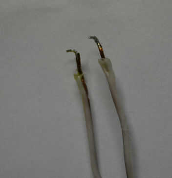 Tira de una pequeña cantidad de la vaina de un cable de núcleo sólido. Si el núcleo es más grande que el agujero en la vía, utilice un archivo pequeño para remover algún material. También puedes prensar el cable con los alicates, deformación de la punta por lo que es de un diámetro más pequeño. No hay mucho del cable va a caber abajo en la vía (ni un milímetro), así que hacerlo a la punta. Disminuyendo el diámetro del cable más de lo que tienes que debilitarlo y hacerlo propenso a la rotura. Usando un cable con un núcleo de tamaño adecuado es preferido, pero puede ser difícil de conseguir. Alternativamente, puede intentar usar un hilo multi-trenzado y recortar ligeramente de alambre de todos pero una vuelta antes de estañar el extremo.
