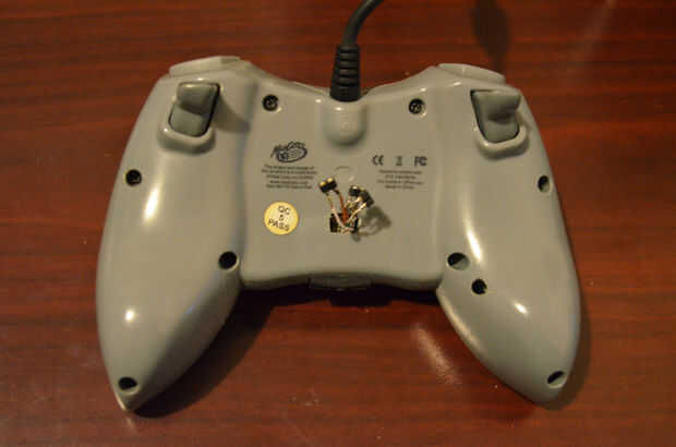 1. Corte una muesca en la cáscara donde se encuentran las dos mitades. Vuelva a colocar la placa de circuito en la parte inferior de la mitad de la cáscara y pase los cables desde los puntos de soldadura hasta la muesca que ha seleccionado. Tendrás que evitar cualquier puntos donde los cables se quedar apretados, que dañarán el revestimiento plástico y provocar un cortocircuito, que podría destruir su controlador mediante la aplicación de tensiones a zonas sensibles. La ventaja aquí es que puede abrir la carcasa del controlador y retire la placa de circuito, si es necesario después de haber instalado los botones. La desventaja es que tienes cables de saturar hasta dentro y fuera de su controlador, ya que tendrás que correr los cables a lo largo de la parte exterior de la cáscara en donde están colocados los botones.