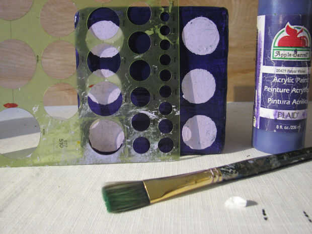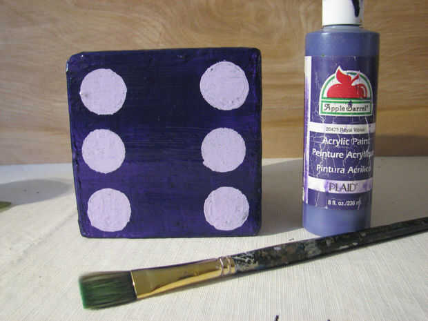 Se trata de ir loco. Diviértete escogiendo colores. Los dados de la pintura un color sólido y luego añadir los puntos. He utilizado una plantilla de círculo como una plantilla. Esto hizo que todos los puntos de la pintura un poco más fácil.