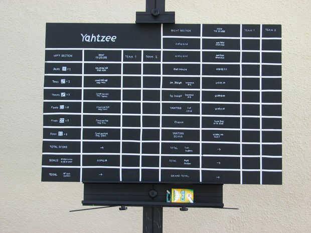 Un lápiz de pintura blanca hace el trabajo de escribir toda la palabra. Hay un montón de tarjetas en línea para utilizar como guías para el cuadro de mandos.