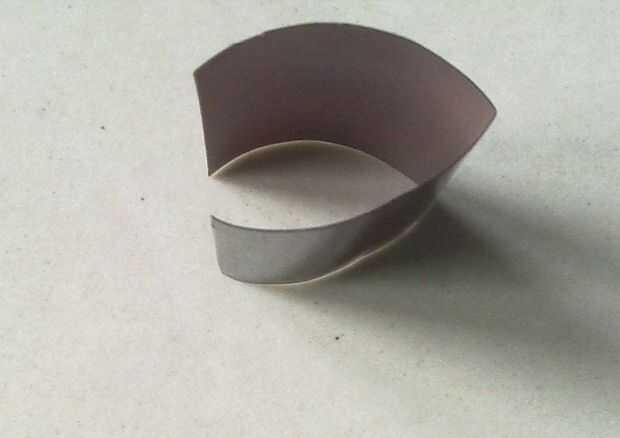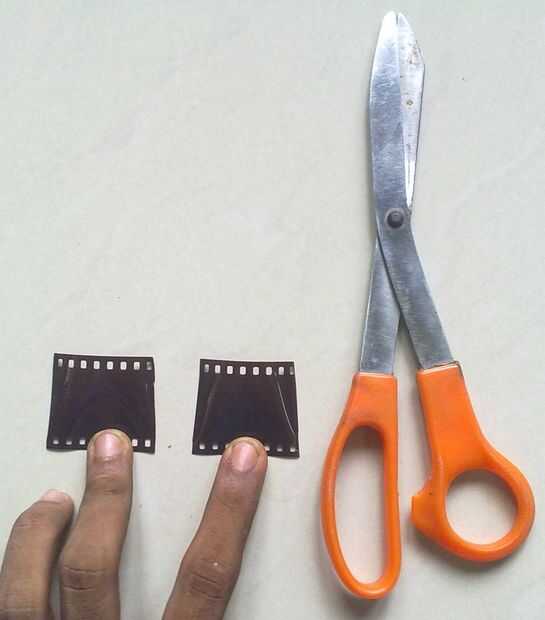 la película cortarlo en dos piezas rectangulares, recortar los bordes con unas tijeras y luego dóblela como se muestra