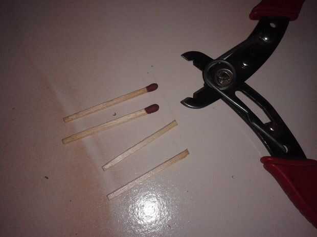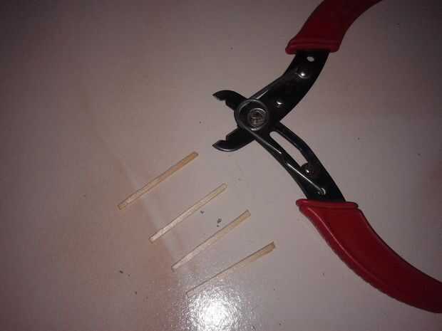 3) cortar la cabeza de los todos cuatro palitos de fósforo.