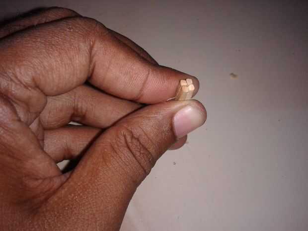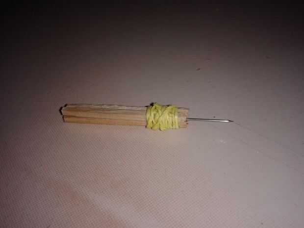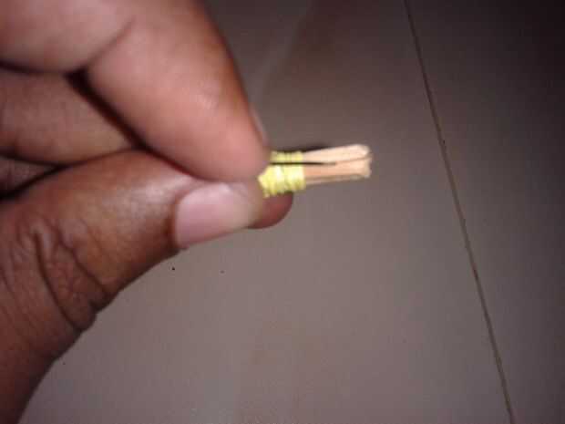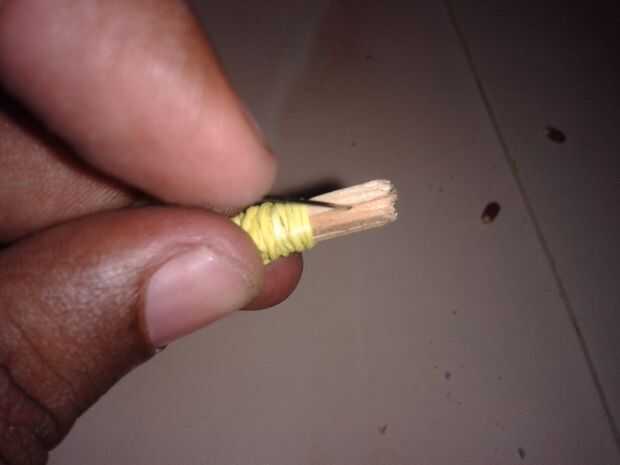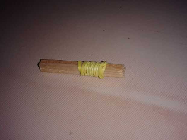 1) mantener todos los palos de cuatro fósforo juntas como la imagen y enlazar con banda de goma.