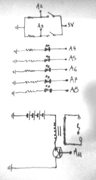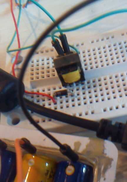 Usé una potencia NPN BD139 para generar algún tipo de corriente alterna a través del transformador. Después de jugar con los componentes de la cámara. Me cambié a una alternancia de software generado más.