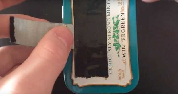 En primer lugar, desmoldar cualquier mentas Altoids sí mismo y enjuague el polvo fuera de él. Te queremos empezar por el interior de la guarnición superior e inferior con cinta aislante. Esto es no sólo por estética, sino también reducir el ruido de los juegos "rechinar" alrededor de la lata.
