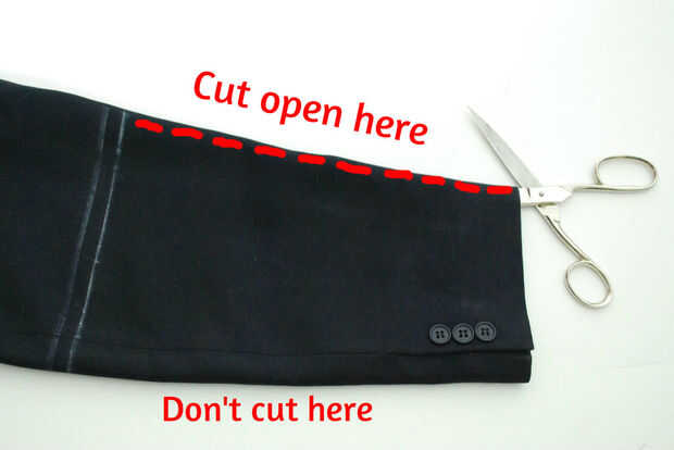 Cortar la manga abierta (la tela exterior y el forro)