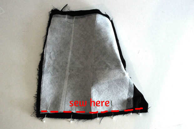 Aseguró el tejido exterior y forro con pasadores y top cosido como se muestra en las fotos.
