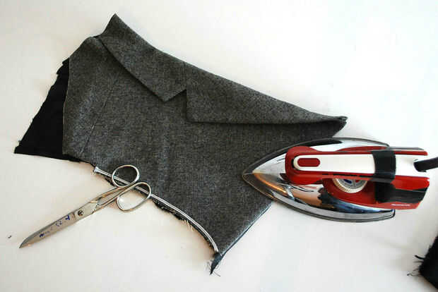 Me dobla el margen de costura de la tela exterior hacia el interior y planchar.