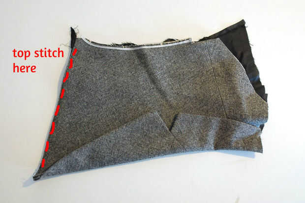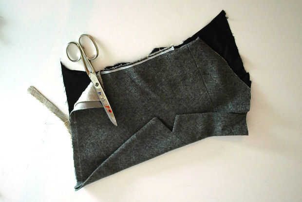 Para la tapa recortar la interfaz original en la anchura de la costura.