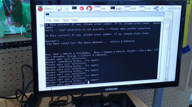 Raspberry Pi ordenador significa que todos los componentes electrónicos pueden caber en la caja! Escribir un programa en Python para recorrer una serie de preguntas de la encuesta y cinco opciones posibles que se asignan a las piezas de respuesta de encuesta.