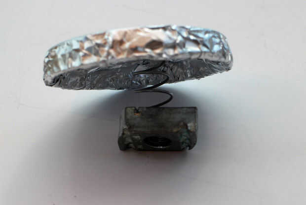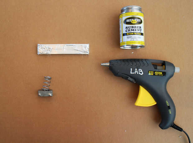 2. para piezas de resorte unistrut, caliente del pegamento (o epoxy) la parte superior del resorte en la parte inferior de de cada pieza de respuesta encuesta asegurando buen contacto con la lámina de la pieza de encuesta.