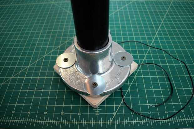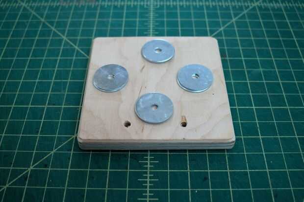 4. Añadir una capa de 2 dos arandelas debajo de la base para evitar aplastar el alambre, luego taladro o conecta de lo contrario, la base para un panel de madera.