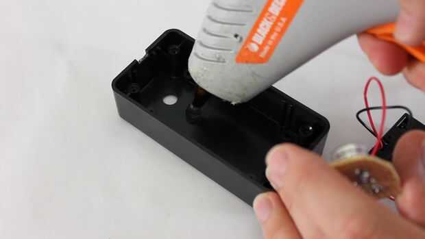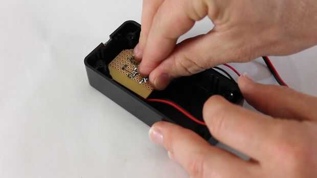 Os adjunto el circuito en el interior de la caja con pegamento caliente. También montado las baterías dentro de la caja. Luego cerró para arriba y atornillado en la tapa.