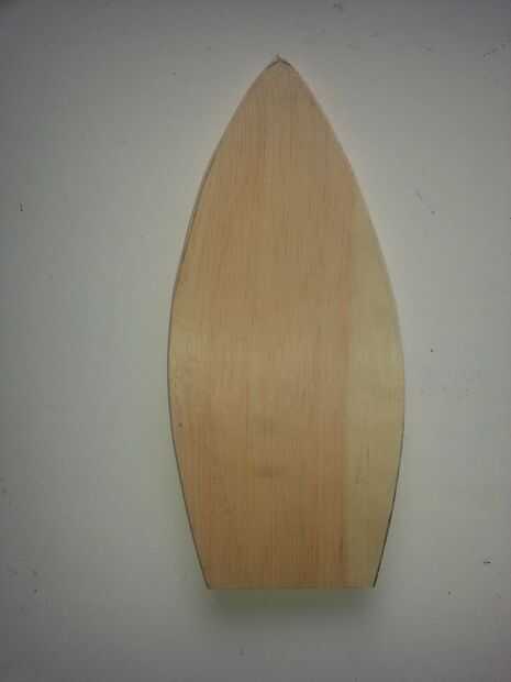 Cómo hice mía fue cortar la plataforma trasera en forma de tabla de surf. El tablero trasero está allí para verse bien y para proteger lo que usted coloque sobre de conseguirlo. También se utiliza el anillo fuera de rebote para conseguirlo en el gancho. Empecé haciendo una plantilla en una hoja de papel. Tomé la hoja de papel y luego lo doblé por la mitad. Dibujé una forma de media tabla de surf. Una vez tuve una forma que me gusta cortar el papel doblado por la mitad haciendo forma de una tabla de surf tamaño incluso. La mía es de aproximadamente un pie de largo, por cerca de 5 pulgadas en el punto más amplio. Tomé la plantilla y colocarla sobre un trozo de madera. Luego lo había trazado en la madera. La pieza de madera es de pulgada de ancho. Utilicé una sierra de calar para cortar la forma de tabla de surf y previoulsly trazada sobre. Luego utilicé una lijadora de acabado para pulir los bordes, superior e inferior.