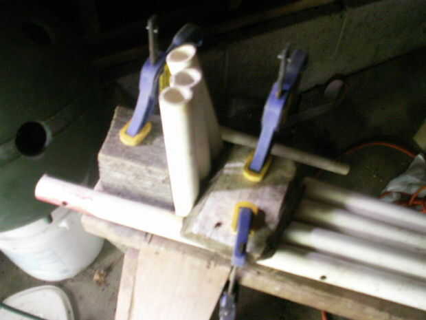 Coja su pistola y ablandar el plástico, hasta que se dobla para ir y venir hasta que todas las 4 tuberías son suaves y, todos ellos doblan para arriba.