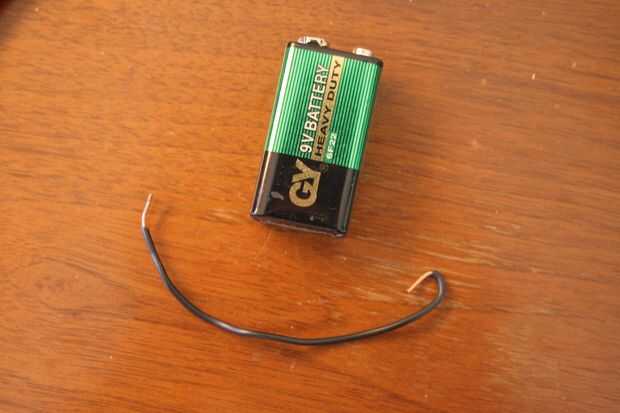 (Una manera fácil es conseguir una batería de 9V con un clip, como en la imagen)