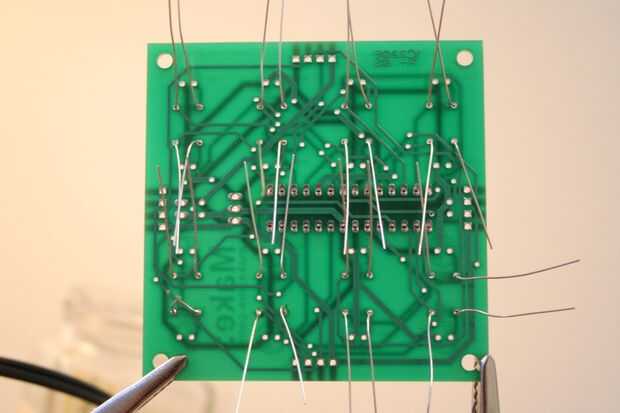 Los cables hacia atrás un poco después en pegar por lo que las resistencias no caigan al girar el tablero la curva.
