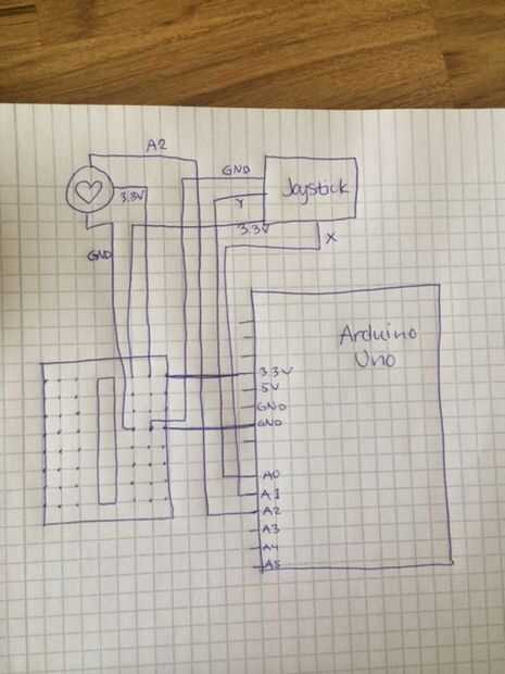 Este es un juego de snake que se navega por un joystick. También hemos utilizado un sensor de pulso para trucar el juego. El sensor del pulso hace que la pantalla cambia de color dependiendo de los latidos del corazón. El momento cuando su corazón late, es el momento en que la serpiente es visible. Cuando su corazón no latía, no podrás ver la serpiente, y el juego será muy difícil de controlar. Esto significa que usted necesitará conseguir un pulso alto para obtener una buena puntuación en este juego.