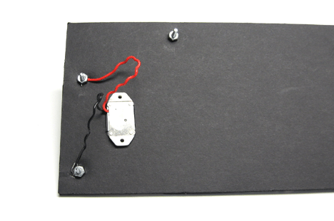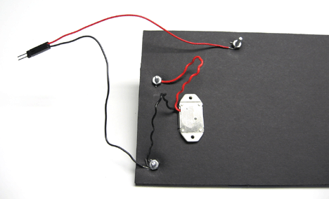 1. con el tablero de juego boca abajo, identifique el zumbador cable (el cable rojo) y toma de tierra (cable negro).