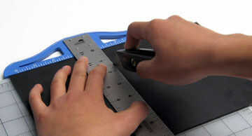 2. hacer los cortes con un cuchillo afilado, con la almohadilla de corte para proteger la superficie de trabajo, como se muestra en la figura.