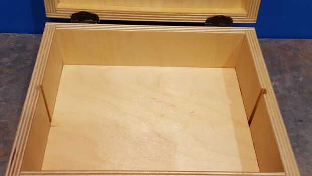 Generalmente es mejor hacer un cuadro como una sola pieza y luego en dos piezas en la mesa de sierra para asegurarse de que la tapa y el fondo de la caja se alinean perfectamente. Sin embargo para hacer alambre embutido más fácil, pegan les por separado. Por lo que es importante asegurarse de que la tapa y el resto de la caja se pegan directamente para preparar las dos piezas.