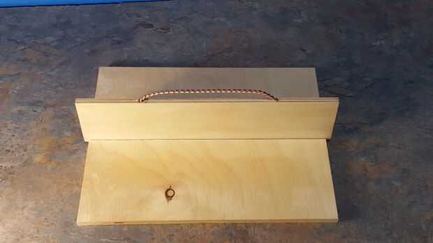 Después de la tarjeta y la placa de cobre eran todos, era tiempo para diseñar y hacer una caja de transporte. Usé 1/2" y 1/4" madera contrachapada hecha frente para que coincida con las cartas de abedul. Usé una articulación simple de la caja. He usado mitad de vueltas que fácilmente podría cortar con la Sierra de mesa y dado las hojas.