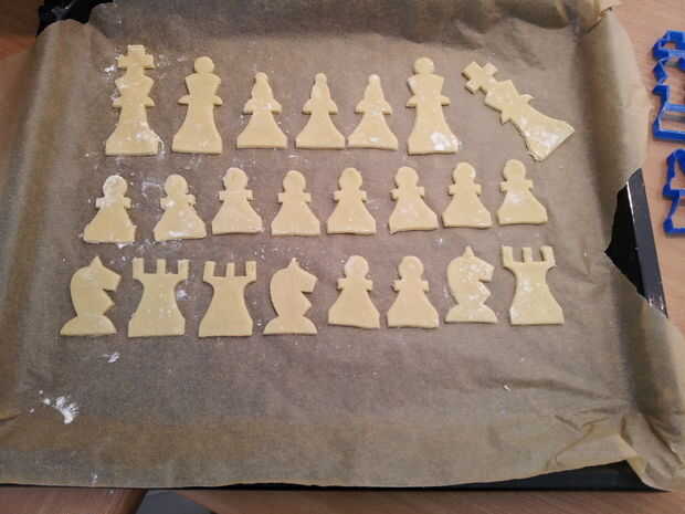 Tenga en cuenta, que necesita un sistema de crema y un conjunto de piezas de ajedrez oscuro. También puede hornear algunas figuras extras como algunos pueden frenar al hornear o jugando.