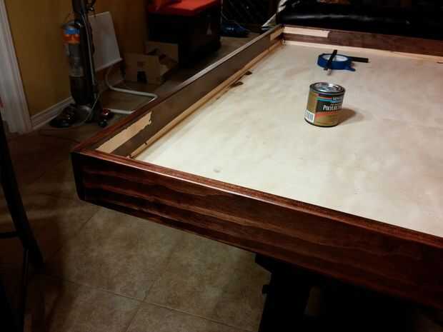 Poliuretano todas las partes manchadas con un par de capas, teniendo cuidado de no para poliuretano las superficies va a pegar. También asegúrese de que no perderse todas las áreas que tendrán la mancha porque una vez que el poliuretano es un dolor para volver. Por ejemplo, algo de madera sin manchas fue visible justo por encima de la moldura en un lugar y terminé tener que cubrirlo con un rotulador.