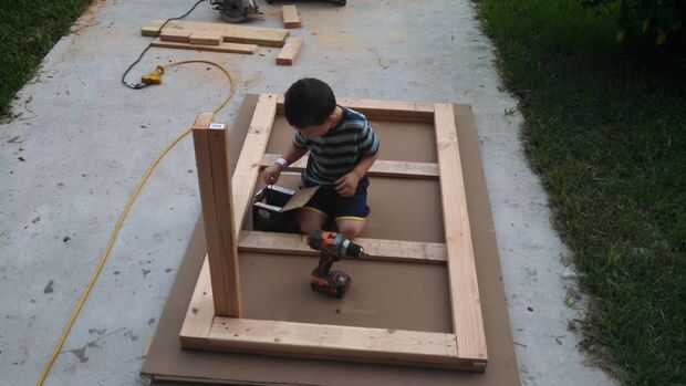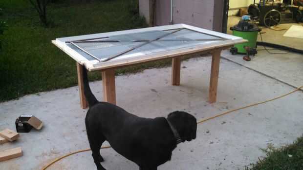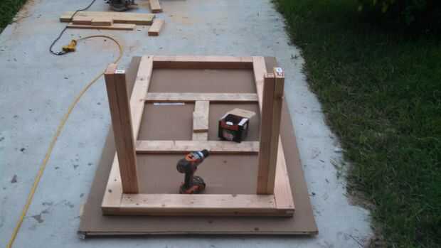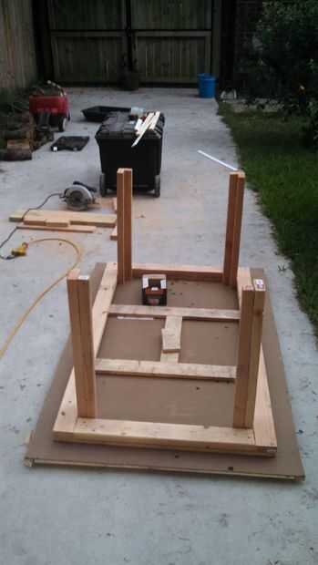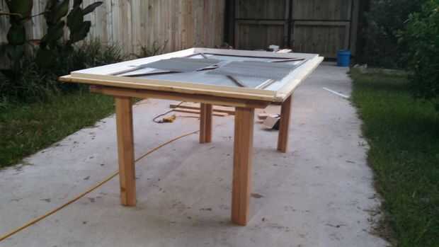 mesa de hormigón superior después y antes dePaso 1: quitar chapado madera vieja que venía de después de 2 años. uso vibrante herramientaPaso 2: Quite el viejo carril debajo, solidificar el apoyo de la mesa con 2 x 4 para soportar peso del hormigón. c