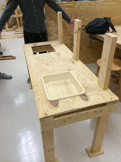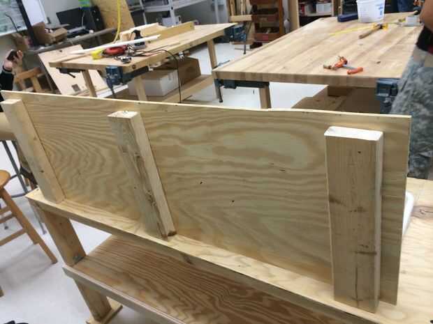 Basada en los dibujos, desde el programa de infancia temprana, querían un tablero para colgar ollas de juego para niños. Tuvimos que crear el tablero a instalar tres 2 x 4 hacia la parte posterior, en el mostrador a añadir soporte para el respaldo y mantener firmemente en su lugar. Este entonces nos permitiría instalar ganchos para que los profesores del programa tienen un lugar para colgar el juguete ollas y sartenes.