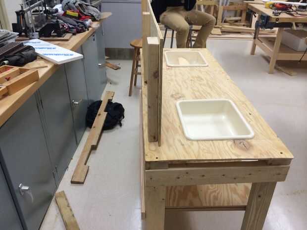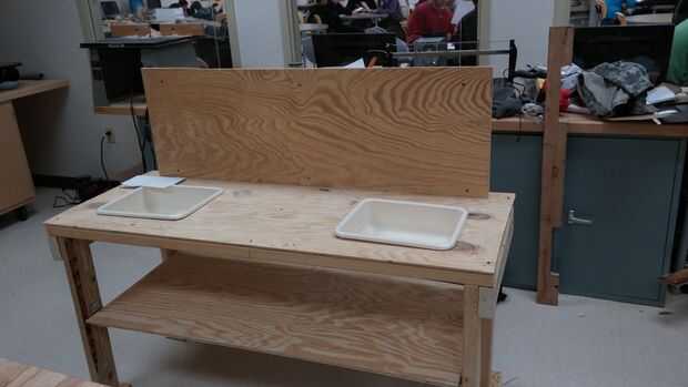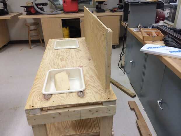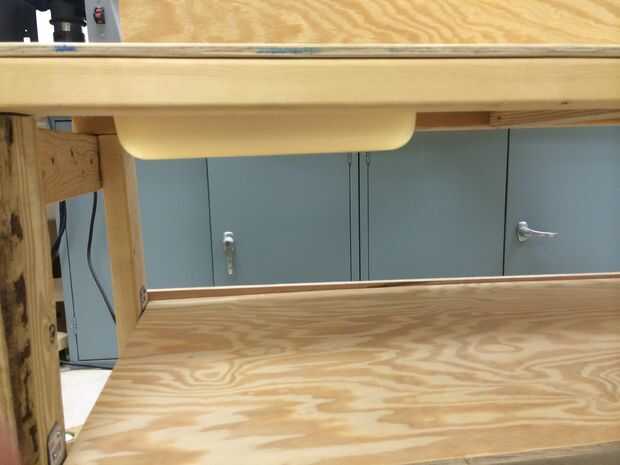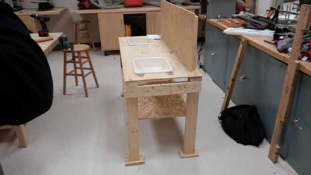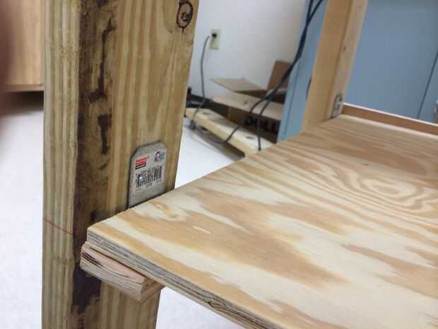 También de los dibujos podemos ver claramente que quiere instalar un estante para almacenar artículos de juguetes más. Así conseguimos otro pedazo de madera contrachapada que era 1/2 pulgada de grueso para ayudar a apoyar la explotación artículos más gruesos. Luego cortamos esta madera contrachapada para tener la misma longitud exacta como la encimera para actuar como uno mismo a objetos de los niños. Primero instalamos 4 "L" soportes para mantener al auto en su lugar pero el programa había solicitado que el ser debe ser fácilmente desmontable para su limpieza. Así que instalamos una pista hecha de trozos de madera de lamento porque la superficie en madera lamento no hacer tanta fricción al sacar al auto. También instalamos la pista para ser fácilmente se deslice hacia afuera en lugar de tener que recoger de los soportes instalamos. A continuación, por último, instalamos una pieza de madera en la parte trasera de la pista por lo que el ser sólo podría ser sacado de una manera. Es de esta manera sería menos probable que uno de los niños para sacar de uno mismo y caer, posiblemente lesionar o dañar sus artículos.