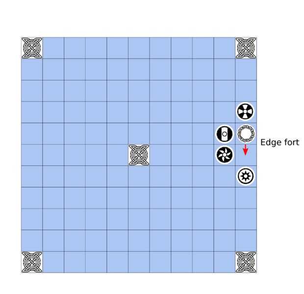 • La defensa pierde si todas sus piezas están rodeados y no les pueden alcanzar el borde del tablero.