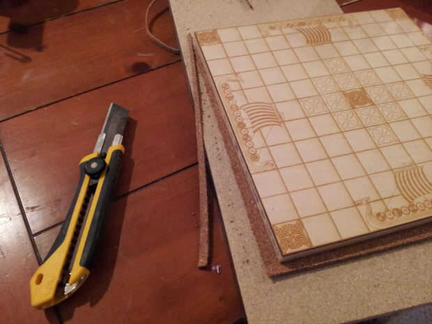 Para evitar cualquier inestabilidad en la Junta, vamos a añadir una base de corcho. Línea de la tabla en una hoja de corcho y utiliza un cuchillo para cortar el corcho en la dimensión correcta.