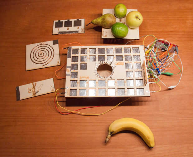 Fue bastante difícil hacer brazos. No queremos hacer algo con solo frutas y música. Así que después de un largo intercambio de ideas y después domar la Junta MakeyMakey, decidimos hacer un juego de mesa.
