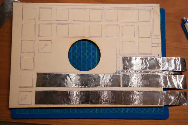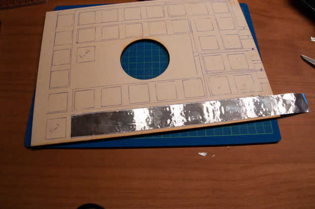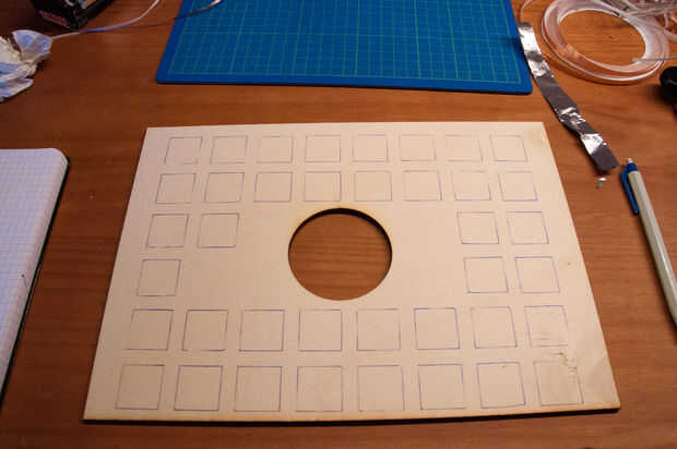 Poner las placas juntas. Seguimiento de las ventanas en la parte inferior y trazar la plaza con un lápiz. Ahora tienes la plantilla y sabes dónde están los casos.