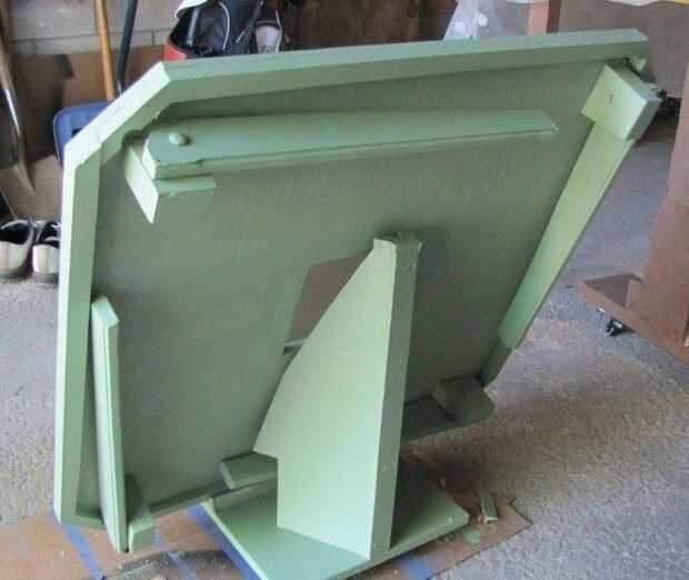 12. orificio a través de la pierna y ayuda de la pierna (aproximadamente 1 ¾" del borde superior) así que usted puede hacer pivotar la pierna hacia arriba y hacia abajo (ver foto). Poner perno y apriete la tuerca por lo que hay cierta resistencia.