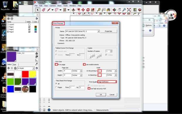 Compruebe la configuración de impresión del Sketchup en el menú 'Archivo', seleccione 'Vista preliminar'.