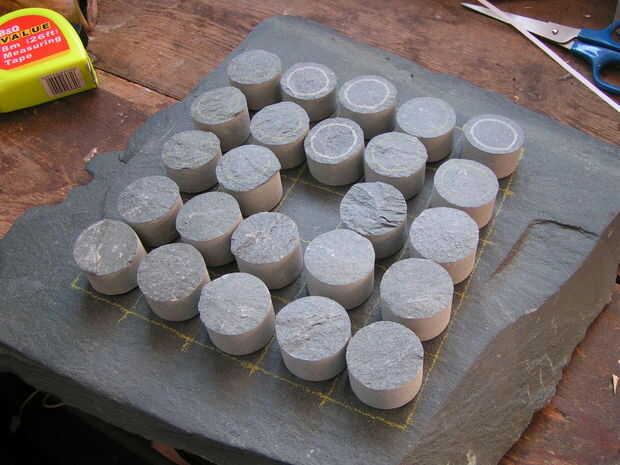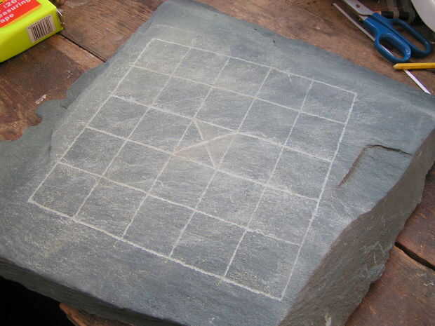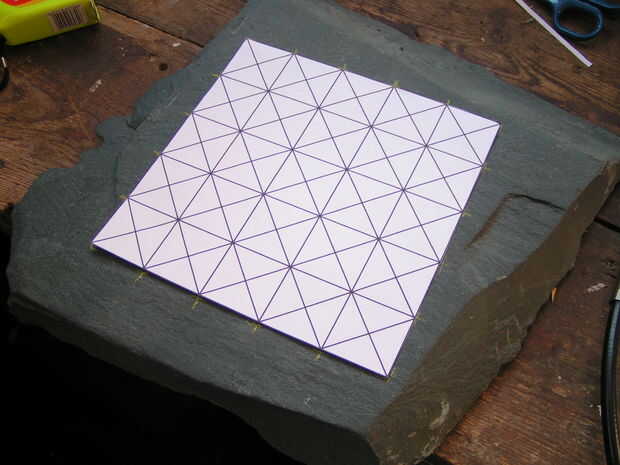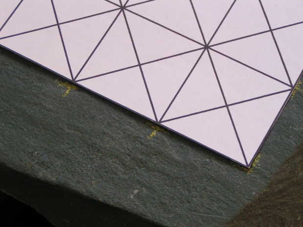 Transferir el diseño resultó para ser bastante simple: I recortar el tablero, marcado de las esquinas y extremos de las líneas en la pizarra con lápiz amarillo, entonces usa una regla para unir los puntos.