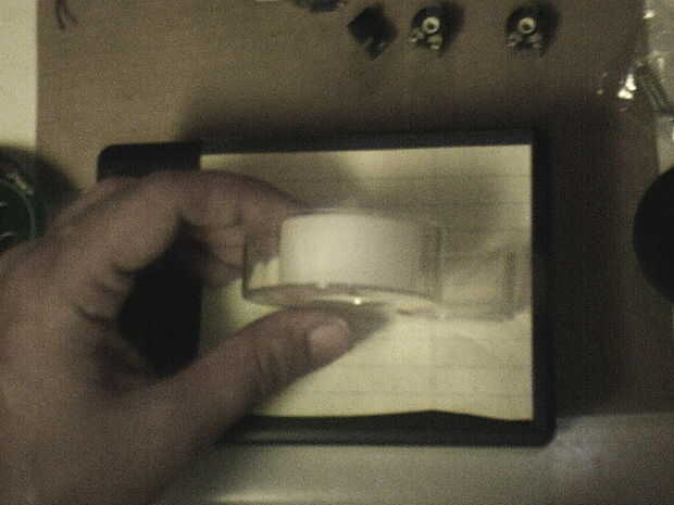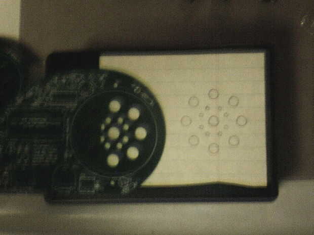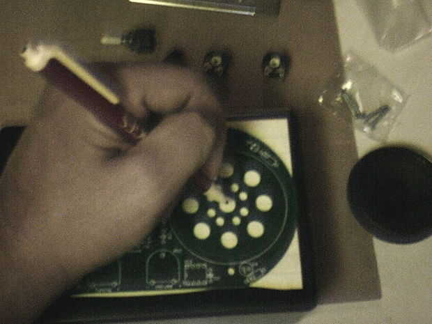 Dos averiguar donde iba poner los agujeros para los altavoces y las partes graba un pedazo de papel sobre la tapa y utiliza un lápiz para marcar donde deberían estar los orificios.