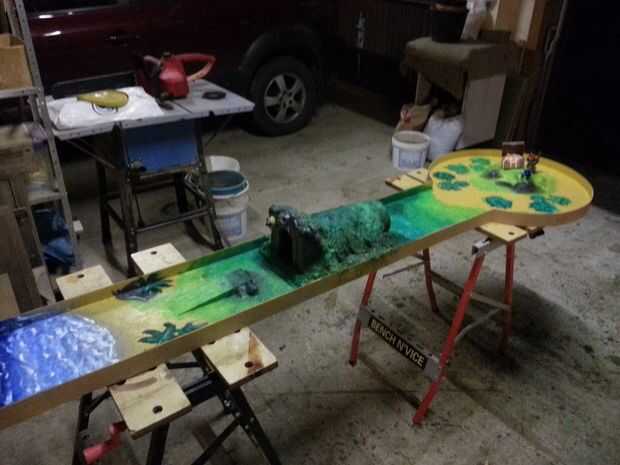 así que un tiempo atrás un amigo mío decidió que se iba a celebrar su día 10000th viva con un partido de minigolf, se acercó a un par de nosotros en el London Hackspace y simplemente dijo:¿"Que quiere construir un curso?Siendo un loco creativo genera
