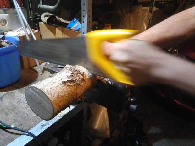 Esta es la parte más sudatory del proceso de construcción. Empezar por la primera línea de corte de la marca. La montaña debe ser aproximadamente de 12-13mm de espesor y probablemente desee medir y hacer marcas en diferentes lugares alrededor de circunferencia de tronco. Esto hace mucho más fácil hacer un corte recto. Después de eso, agarra tu Sierra para madera y comenzar el corte. Repita este paso hasta tener la cantidad de posavasos que desee. No cae, usted conseguirá allí.
