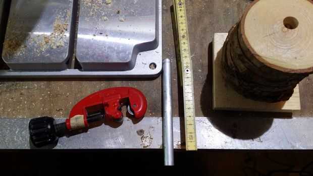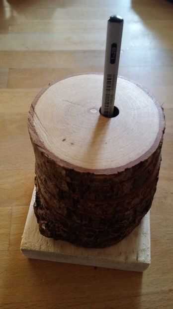 A continuación, taladre un orificio de 10mm en la pieza base para el tubo de aluminio. Probablemente desea que el agujero sea unos 20 mm de profundidad, para dar el tubo un asimiento estable. Asegúrese de que el agujero no está mal para que el tubo está parado recto luego. El agujero no tiene que estar en el centro de la pieza si el tronco ha crecido irregularmente. Sólo considerar que la montaña debe estar completamente en la base y no de solapamiento.