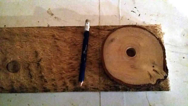 Comenzar agarrando su pedazo de madera para la base. Cortamos un trozo de una tabla para obtener una pieza que fue de aproximadamente 100 x 100 x 25 mm. Por supuesto puede utilizar cualquier pieza de madera que desee para la base, sólo asegúrese de que es al menos tan grande como el posavasos que desee poner en ella.