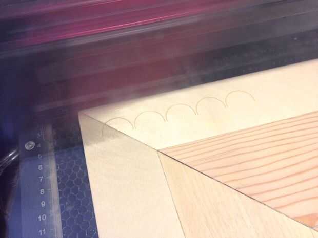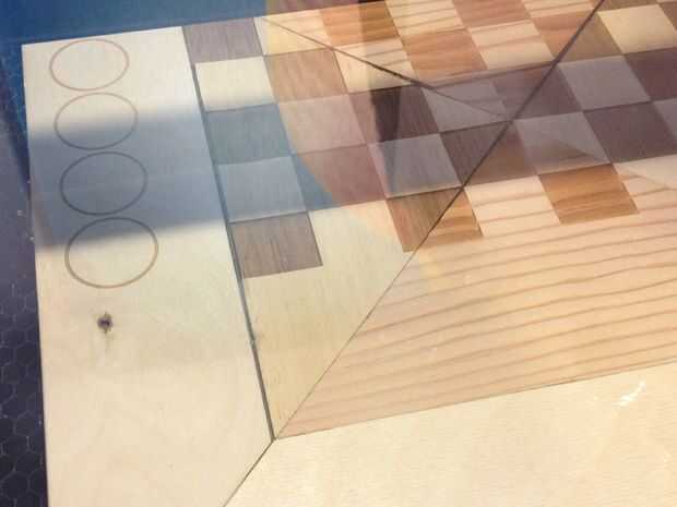 una vez en la máquina envió un archivo con sólo el contorno de las piezas de madera que podría alinear el archivo láser con la Junta.