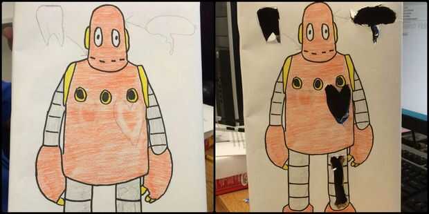 2) tienen un uso adulto el cuchillo x-acto para recortar las formas. (Asegúrese de que los agujeros son lo suficientemente grandes como para entrar los palillos y tire del órgano o elemento al azar hacia fuera).