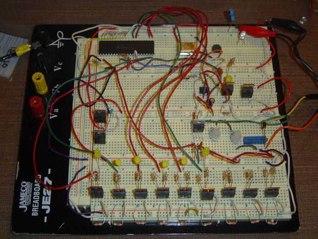El tablero de juego es controlado por un microcontrolador PIC (Microchip) PIC16F877. Tienen de las pinzas de agarre (pinzas de ensalada) tiene un alambre flexible conectado conectado a 5VDC. Cuando la pinza agarre entra en contacto con uno de los lados de aluminio de cualquier cajas de pickup objeto producirá un alto (5Vdc) es poco leído por el microcontrolador y por una facción de ese objeto. El código del microcontrolador está en un bucle comparando los bits de PortB para una señal de alto (5vdc) a cualquiera de la zona de recogida de objetos. El código está escrito cuando se detecta una señal de alto (5vdc) llamará a las funciones de caja de esa zona de Pick-up del objeto detectada. El cuadro de funciones se encenderán la nariz destella luz PortA (Bit0) y zumbador de PortE (Bit0), luego destellará el color tres LED que detecta área de caja y al final de la función apagará (borrar todas las entradas y salidas) y el juego está listo para jugar otra vez. Esta función de la caja tendrá 3 a 4 segundos para completar y luego el juego vuelve a estar listo.