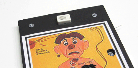 1. había prensado el zumbador en la abertura rectangular en el panel superior del juego.