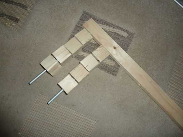 Cuando todas las barras están pegadas en la primera viga, la viga 2 puede sujetarse a las barras.