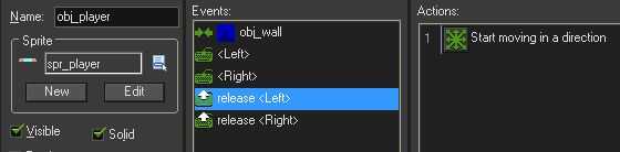 Para hacer la paleta usted añade los eventos vistos en la primera foto. Velocidad horizontal de izquierda debe ser negativo, derecha debe ser positivo. Si establece a relativa debe ir más rápido cada segundo. Para colisión clave de liberación y pared velocidad horizontal = 0.
